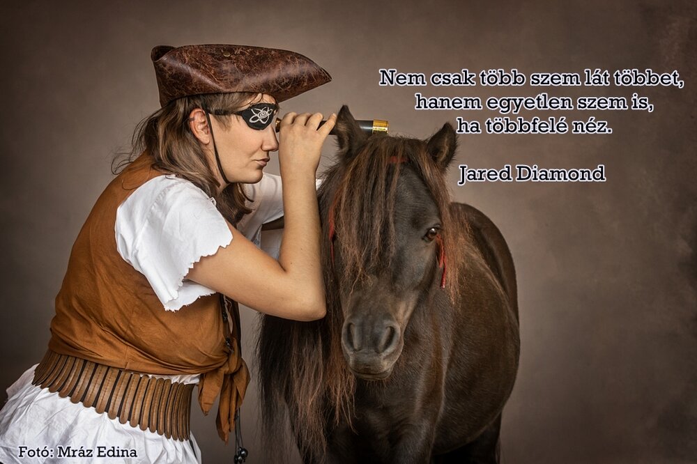A kalóz kosztüm mögött azonban a lókiképzés szakmai elemei és a szóban elmondott élet-tanulságok is helyet kapnak.